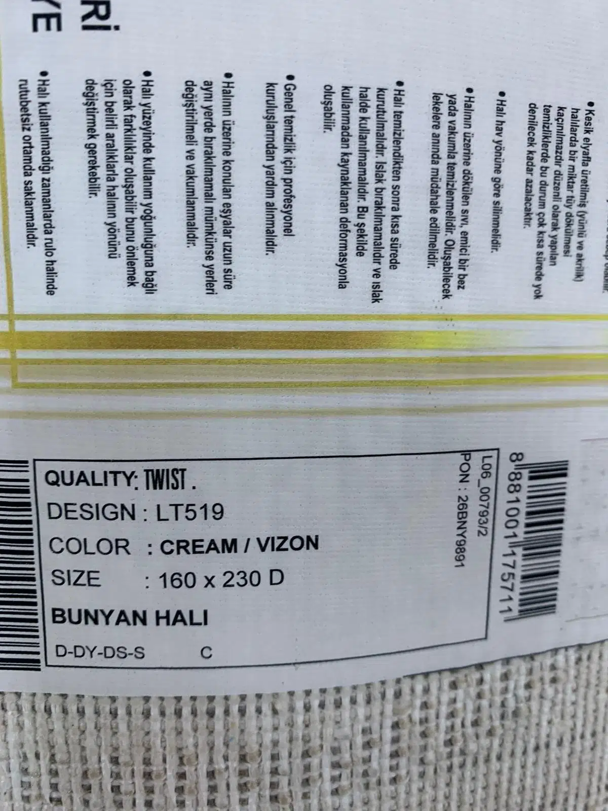 | Etiketler | Bünyan Halı Twist LT519 Serisi Oturma Salon Yatak Çocuk Odası Halısı |