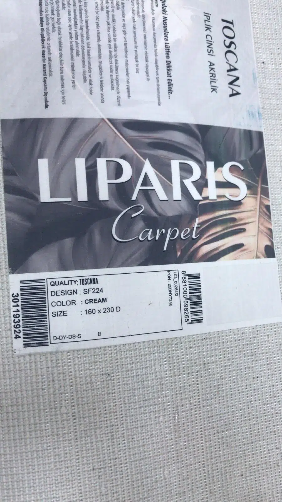 | Etiketler | Liparis Halı Toscana 224 Serisi Triko Akrilik Salon Oturma Yatak Odası Halısı |
