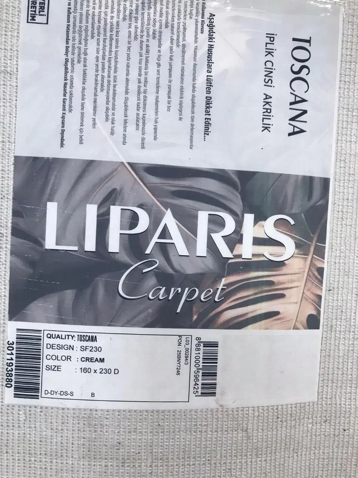 | Etiketler | Liparis Halı Toscana 230K Serisi Triko Akrilik Salon Oturma Yatak Odası Halısı |