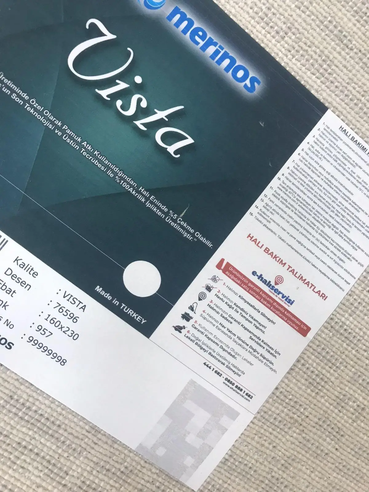 | Etiketler | Merinos Halı Vista 76596 957 Serisi Triko Akrilik Salon Oturma Yatak Odası Halısı |