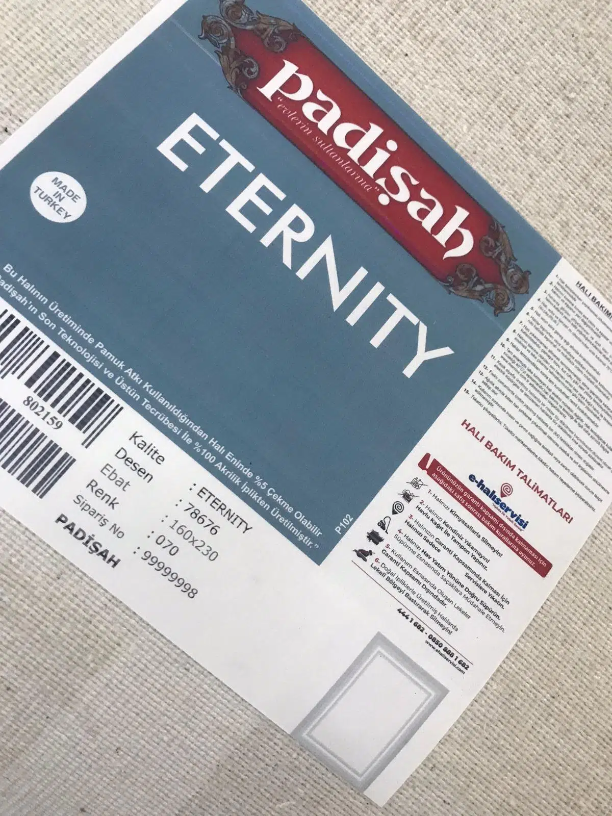 | Etiketler | Padişah Halı Eternity 78676 070 Serisi Akrilik Salon Oturma Odası Halısı |