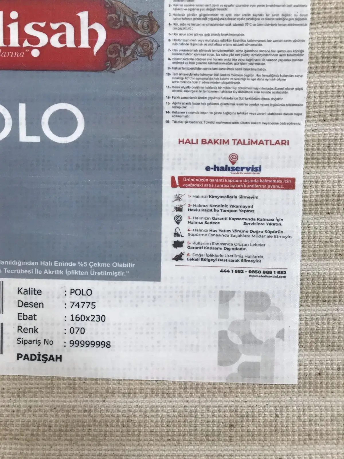 | Etiketler | Padişah Halı Polo 74775 070 Serisi Akrilik Salon Oturma Yatak Odası Halısı |