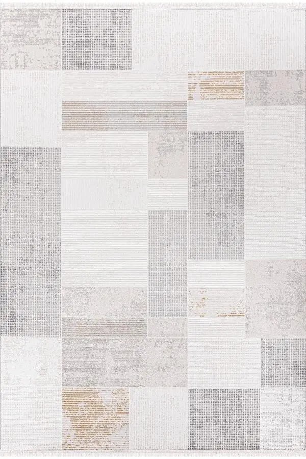 Pastel Halı Zena 455A Beyaz Antrasit Serisi Akrilik Salon Oturma Yatak Odası Halısı